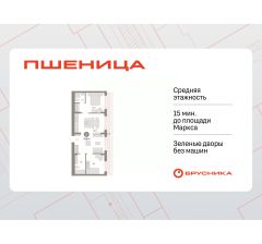 2-комн. квартира от застройщика с предчистовой отделкой в ЖК "Пшеница" на 8 этаже. Общая площадь: 74.61 кв.м. Высота потолков 2.82 м.