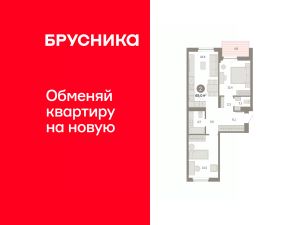 Квартира с кухней-гостиной и двумя спальнями в жилом районе "Пшеница". Особенности планировки: балкон, вид во двор, мастер-спальня, окна на две стороны, предчистовая отделка, разнесённые спальни.