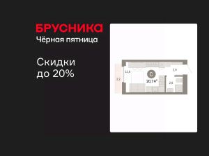 Просторная однокомнатная студия с предчистовой отделкой в ЖК "Пшеница" на 4 этаже. Общая площадь: 20.68 кв.м., площадь гостиной 12.8 кв.м., из которых 5 кв.м. выделено под кухонную зону. Все окна выходят на одну сторону. В квартире один балкон, один совмещенный санузел. Высота потолков 2.82 м.