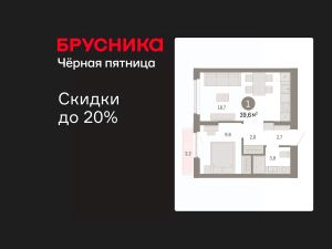 Квартира с кухней-гостиной и одной спальней в жилом районе "Пшеница". Особенности планировки: предчистовая отделка, балкон.