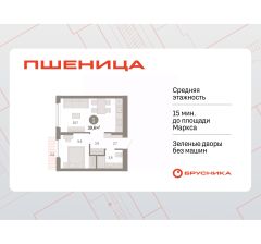 Квартира с кухней-гостиной и одной спальней в жилом районе "Пшеница". Особенности планировки: предчистовая отделка, балкон.