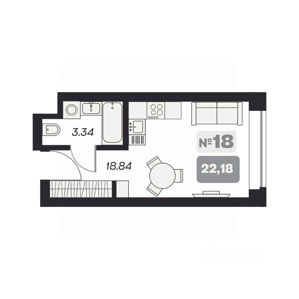 Общая площадь22,18 м²