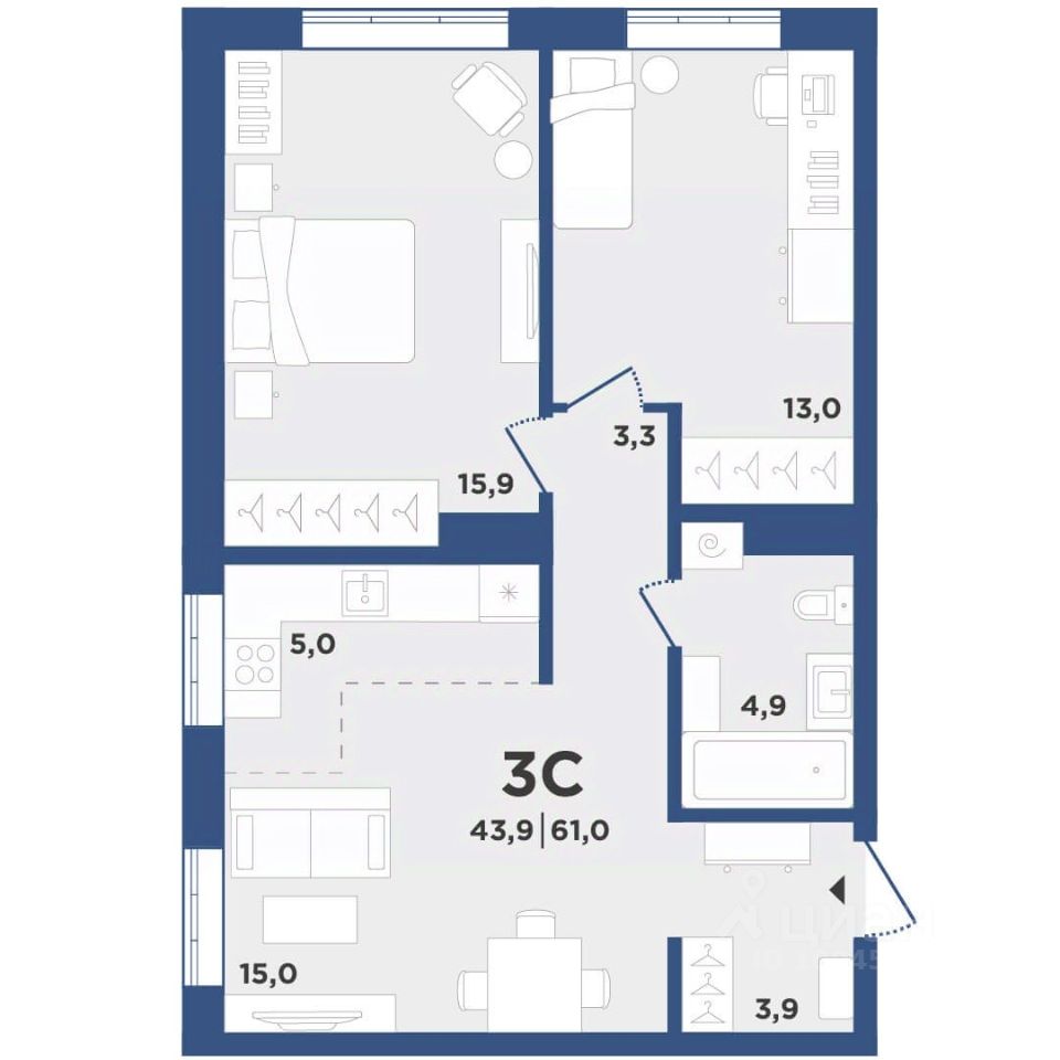 Общая площадь61 м²