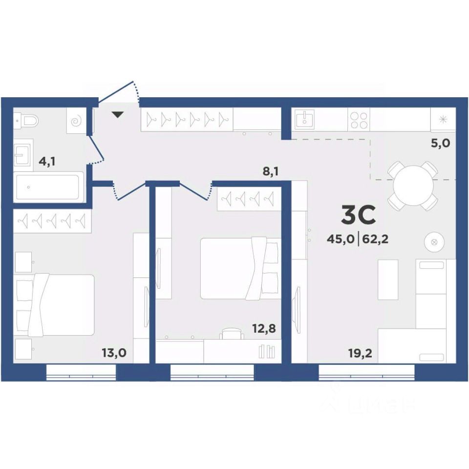 Общая площадь62,2 м²
