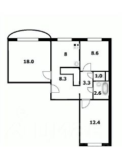 Идеальная планировка для большой дружной семьи: большая кухня и три изолированные комнаты.