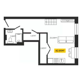 42,91 м²