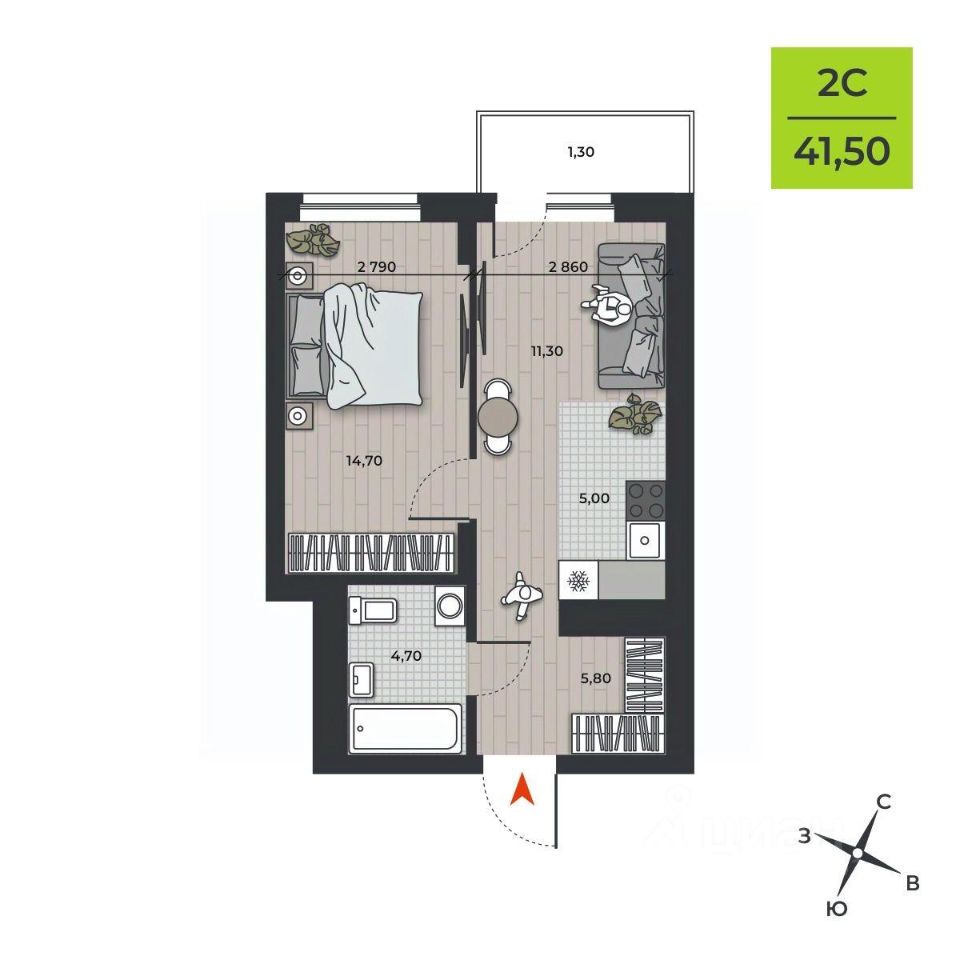 Общая площадь42,7 м²