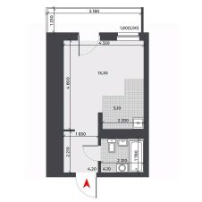 Жилая площадь15,3 м²