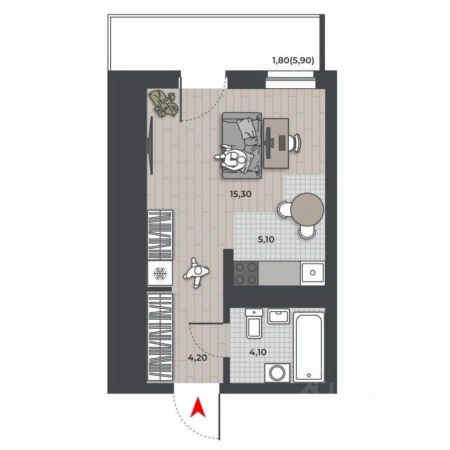 Площадь кухни5,1 м²