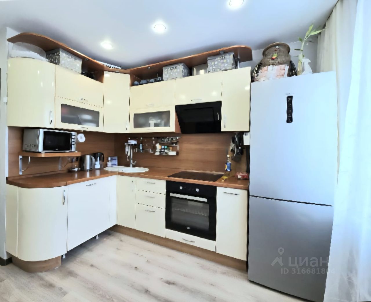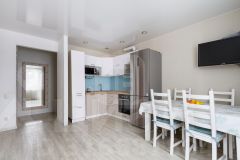 Новому покупателю остаётся кухонный гарнитур со встроенной бытовой техникой, а это варочная поверхность, духовой шкаф и вытяжка, корпусная мебель в детской и вместительный шкаф в прихожей. Приятным бонусом будет гардеробная с оборудованной системой хранения.