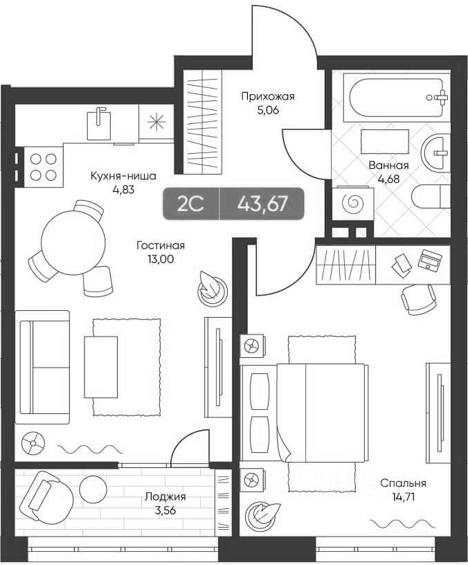 Жилая площадь14,7 м²
