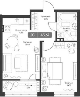 Общая площадь41,74 м²