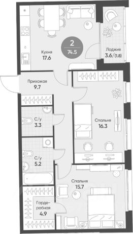 Общая площадь72,7 м²