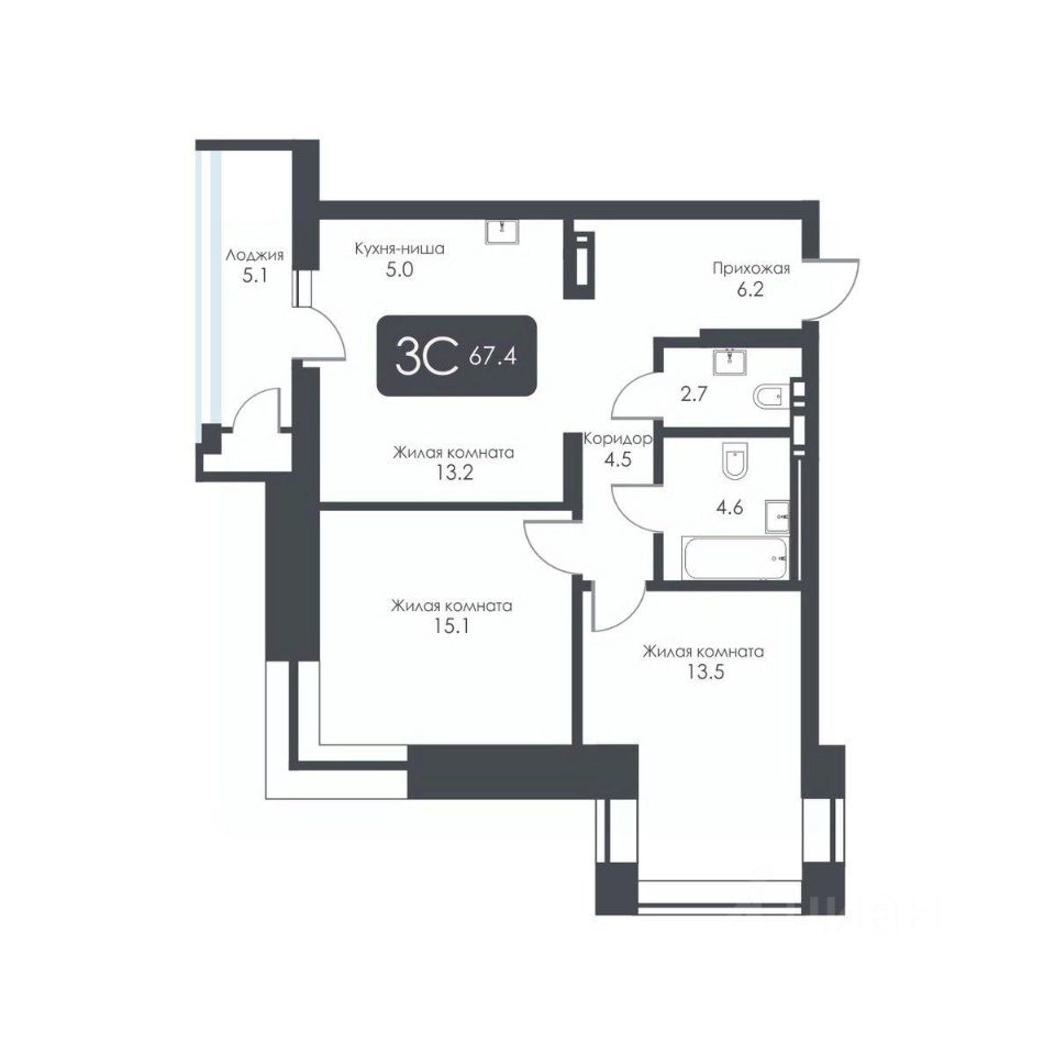 Общая площадь67,4 м²