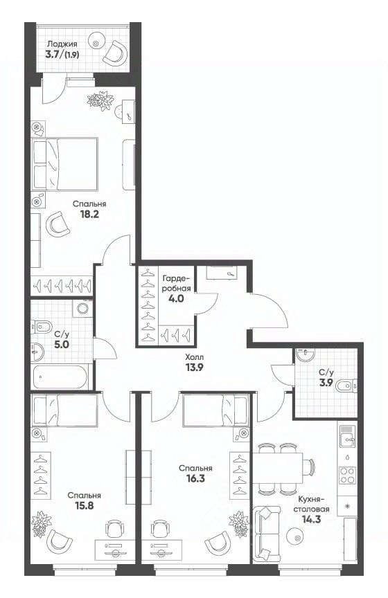 Площадь кухни14,3 м²