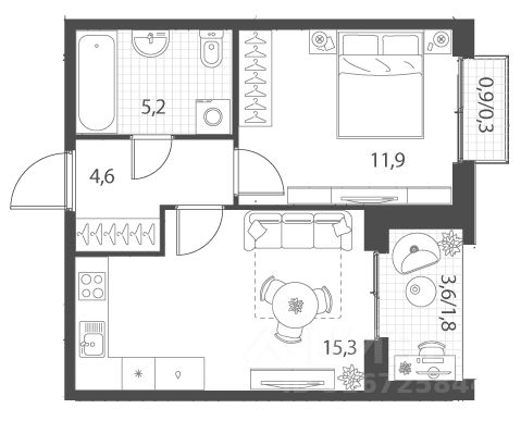 Жилая площадь11,9 м²
