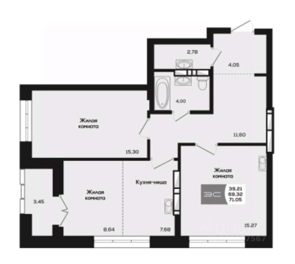 Общая площадь69,32 м²