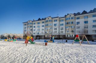Сама территория комплекса облагорожена - газоны, высажены деревья и кустарники, несколько детских площадок."