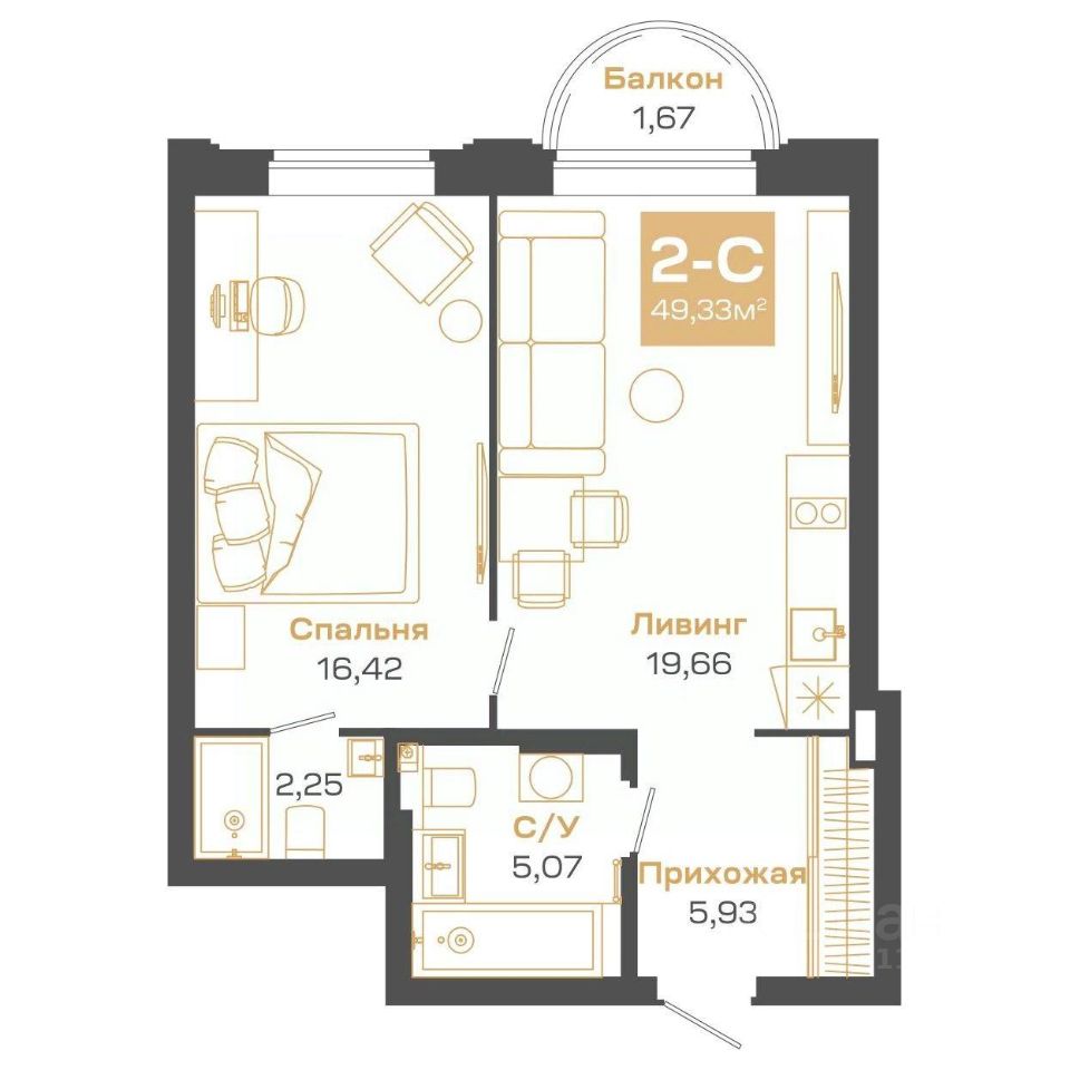 Общая площадь49,33 м²