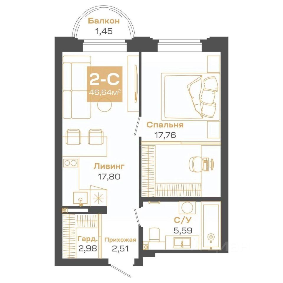 Общая площадь46,64 м²