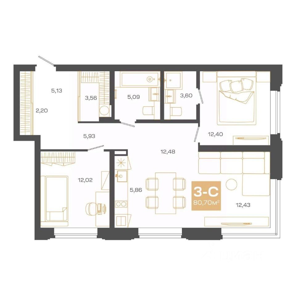 Общая площадь80,7 м²