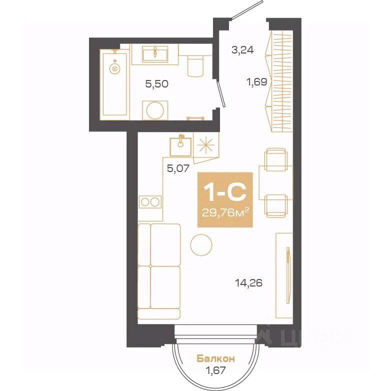 Общая площадь29,71 м²