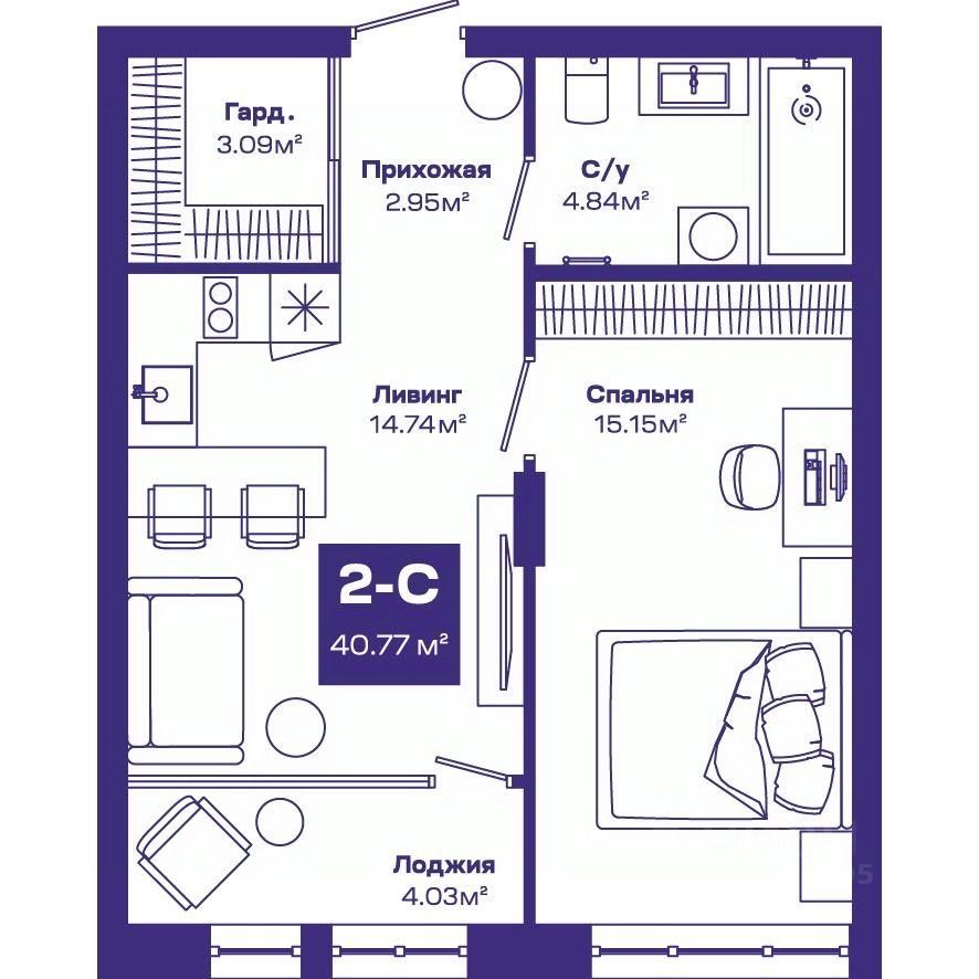 Общая площадь40,77 м²