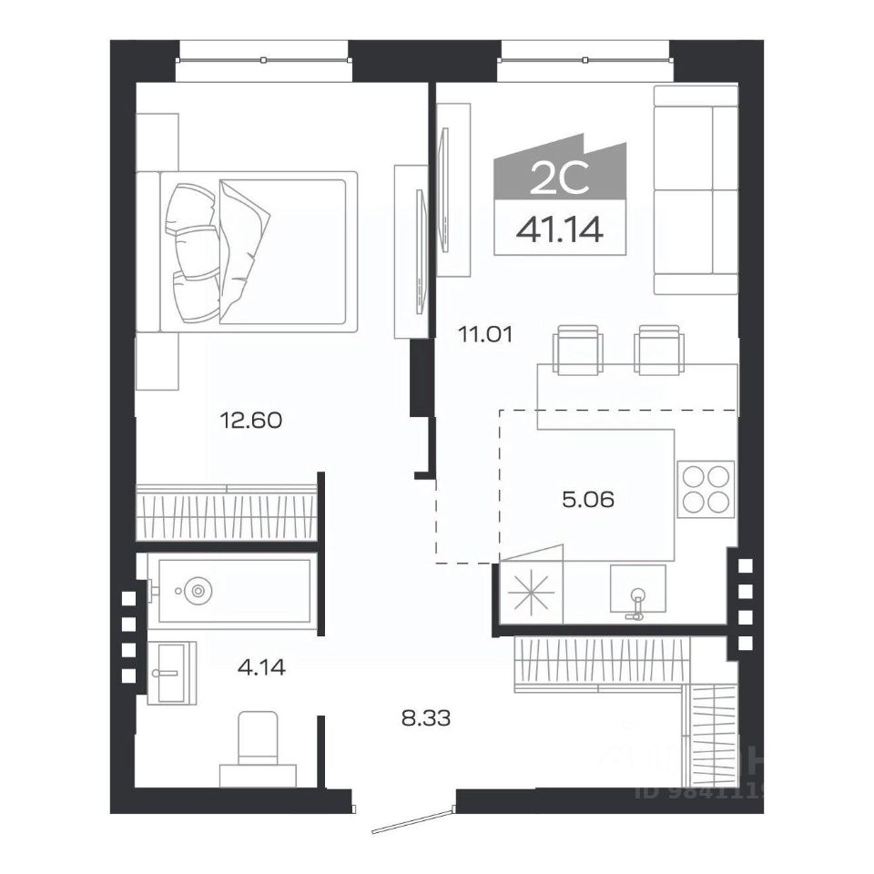 Общая площадь41,14 м²