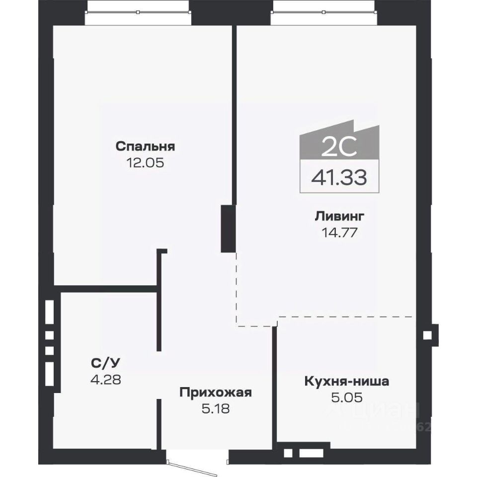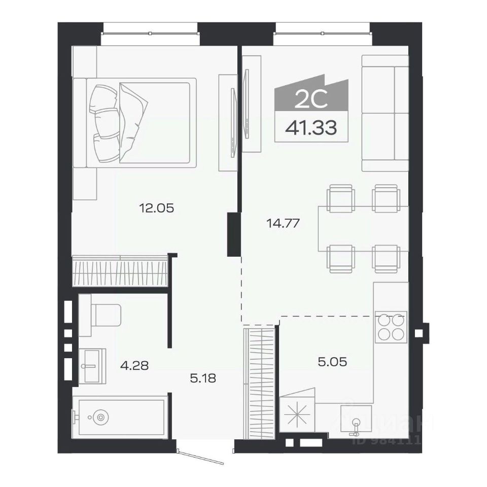 Общая площадь41,33 м²