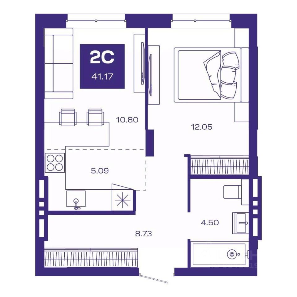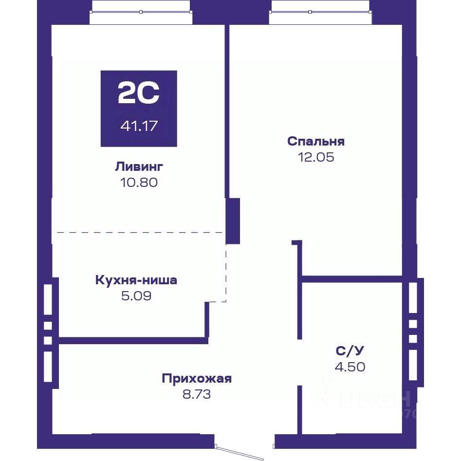 Общая площадь41,17 м²
