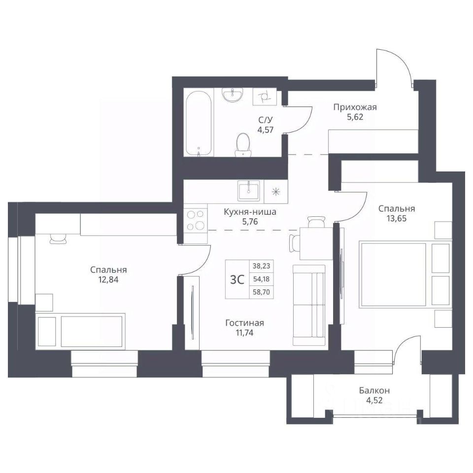 Общая площадь58,22 м²