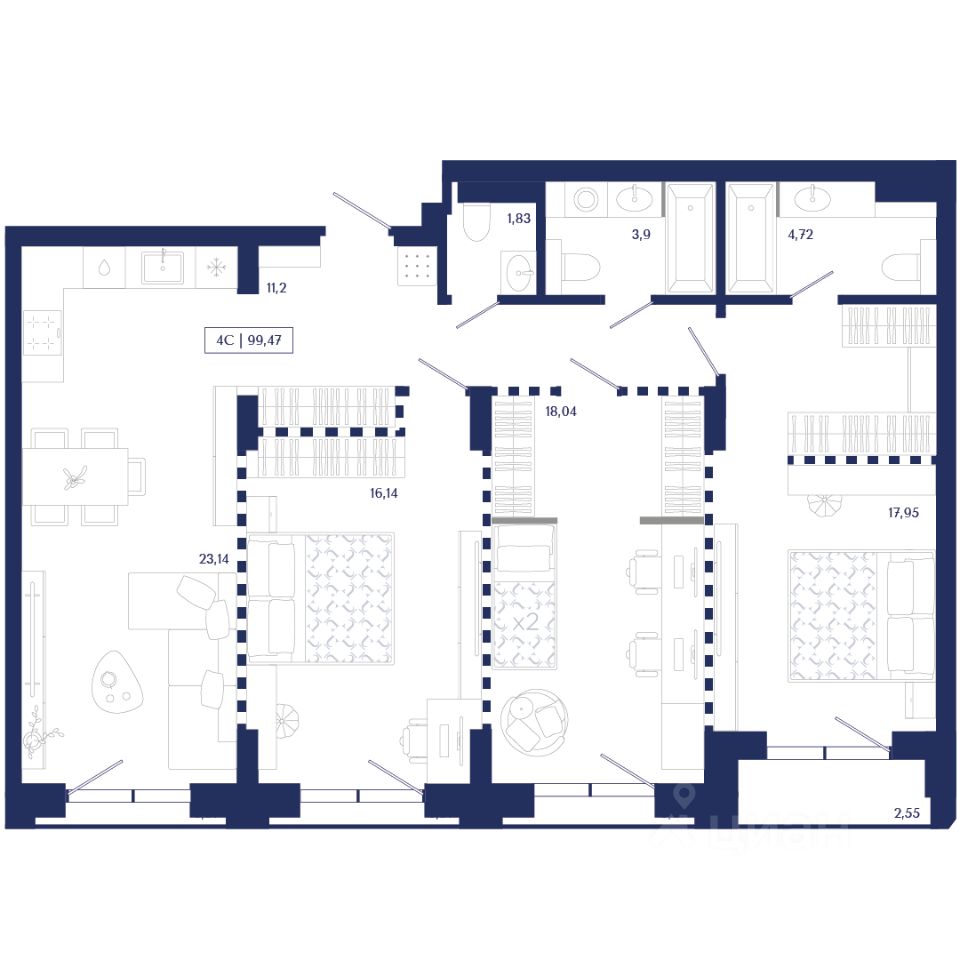 Общая площадь99,47 м²
