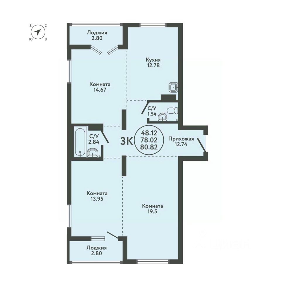 Общая площадь80,82 м²