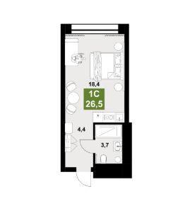Продаётся студия-апартаменты в строящемся доме (4 очередь), срок сдачи: IV-кв. 2026, общей площадью 26.5 кв.м., на 7 этаже. Это динамичная среда для молодых людей, готовых жить по стандартам завтрашнего дня. Разработчики проекта учли главную ценность людей нового поколения - мобильность. Ответом на этот запрос стали комфортабельные арендные дома комплекса, позволяющие молодым людям жить рядом с местом работы в деловом центре города, строить сo-working схемы, достигать бизнес-целей, кооперироваться для решения задач, используя общее пространство и самые современные технологии. Идея строительства арендных домов поддерживает тренд последних лет в среде молодых профессионалов - жить там, где трудишься сейчас.