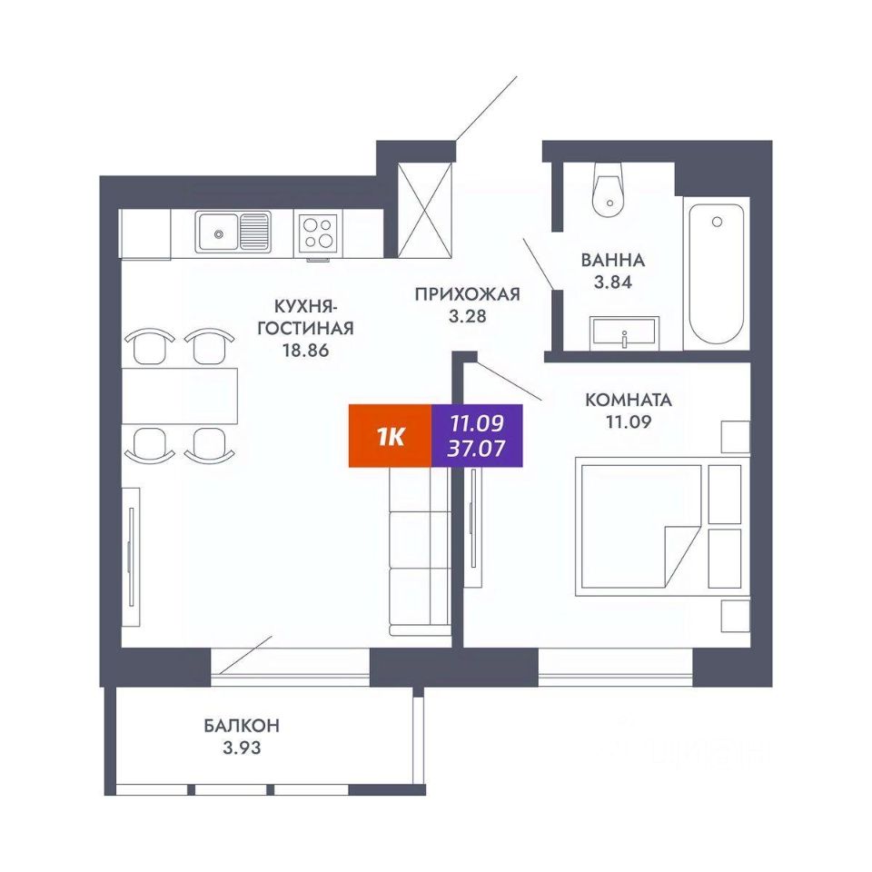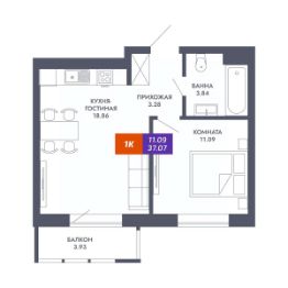 Общая площадь37,07 м²