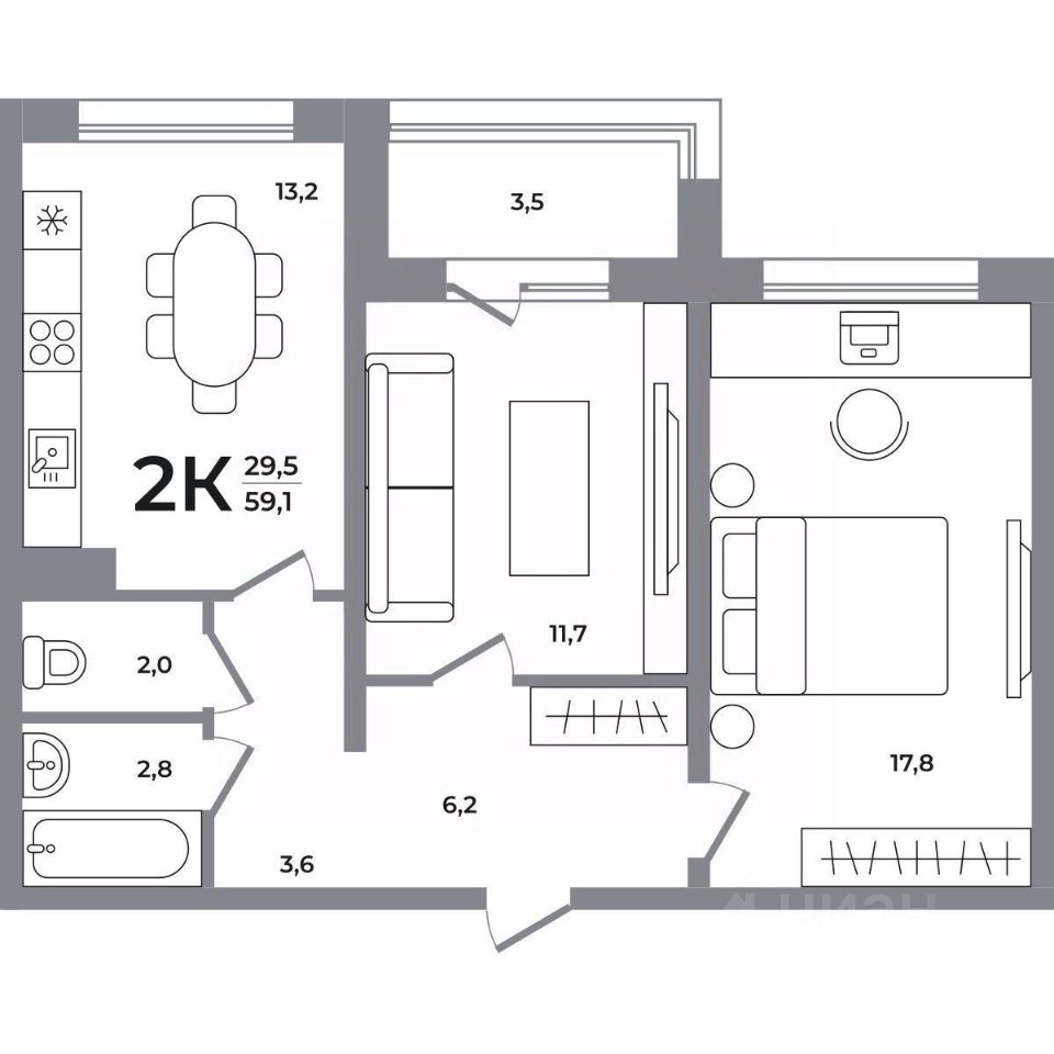 Общая площадь58,7 м²