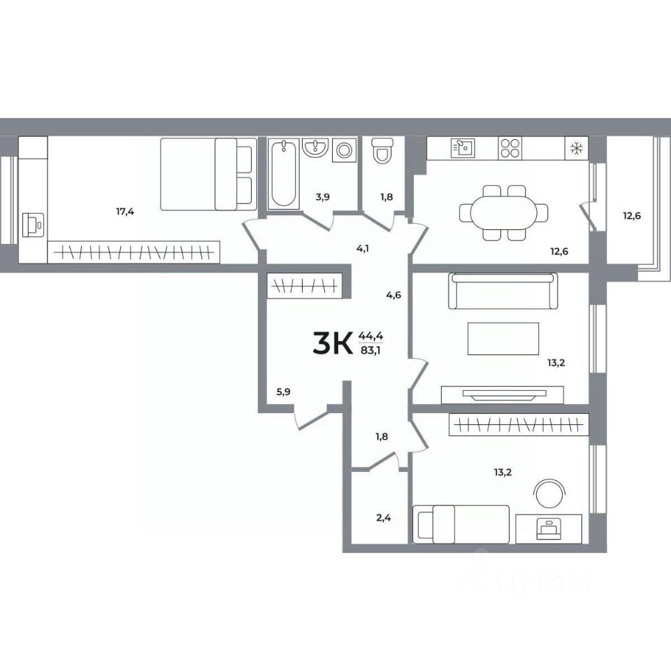 Общая площадь83 м²