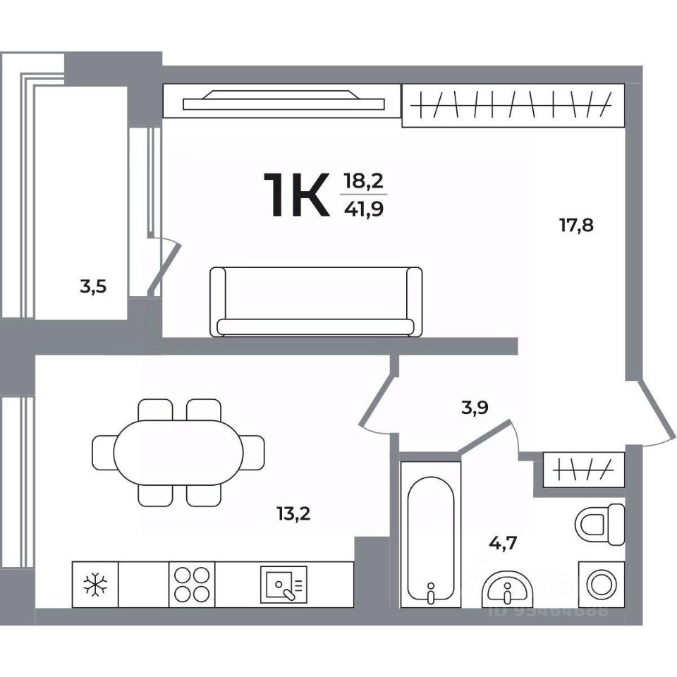 Общая площадь41,1 м²