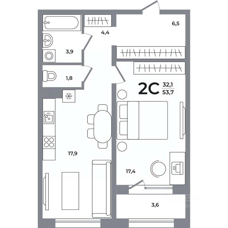 Общая площадь53,5 м²