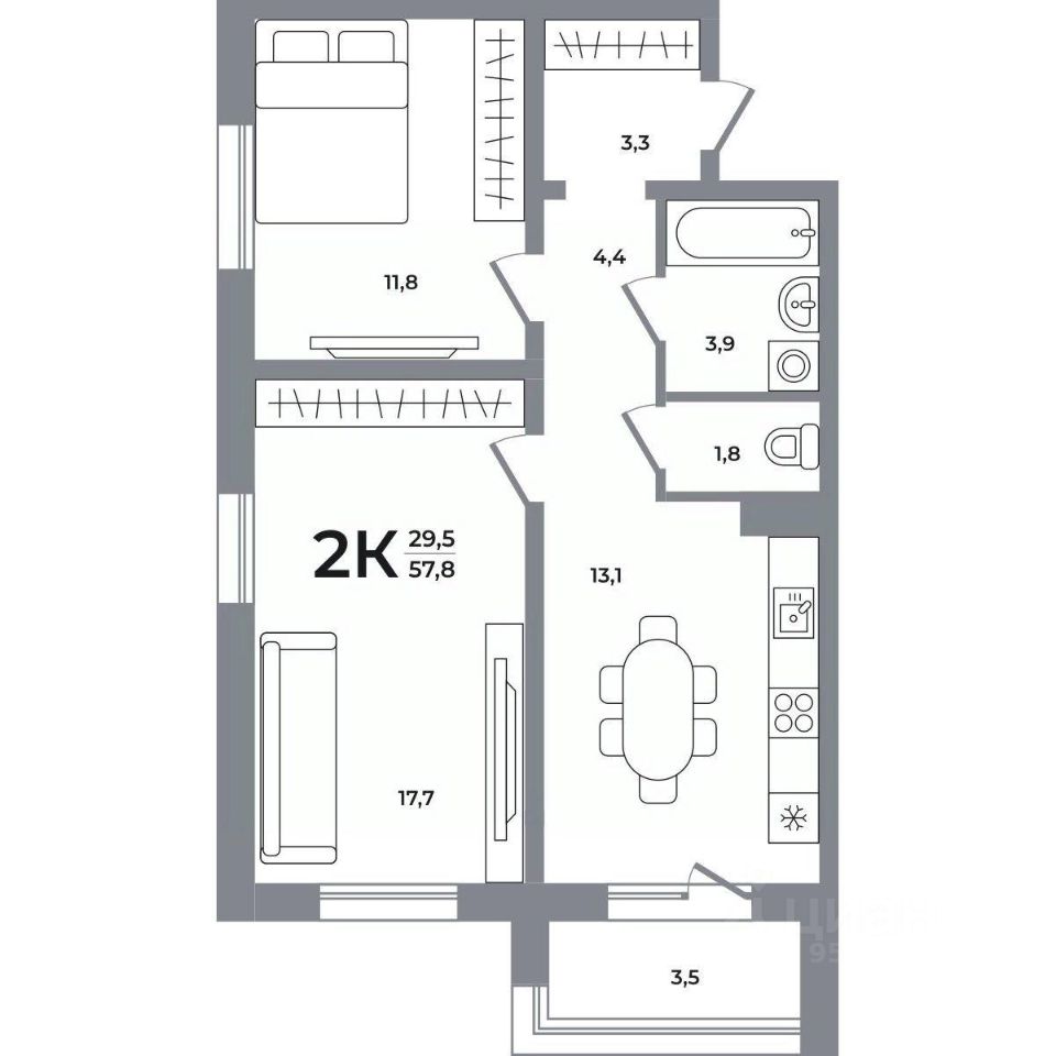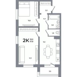 Общая площадь57,5 м²