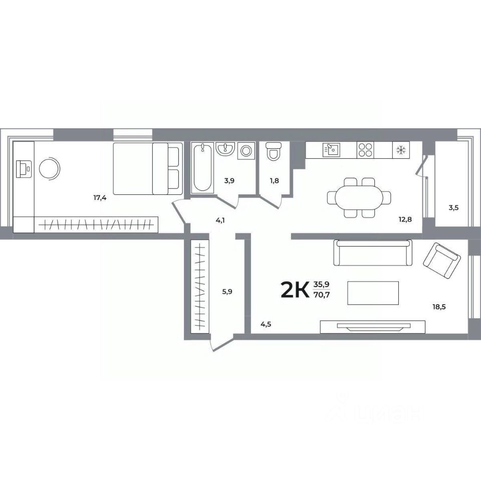 Общая площадь70,2 м²