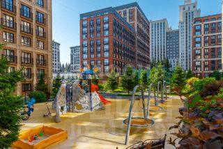 двор без машин, современная детская площадка, система видеонаблюдения по периметру и внутри дома, подземная парковка.