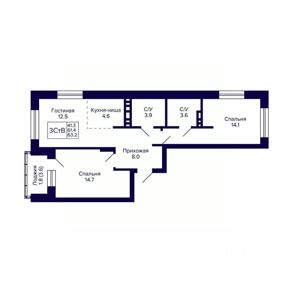 Общая площадь63,2 м²