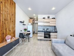 В квартире выполнен дизайнерский ремонт, что создает уникальную атмосферу уюта и комфорта. Все продумано до мелочей: от стильной мебели до современной техники. Пространство организовано таким образом, что каждый квадратный метр используется максимально эффективно. Санузел оборудован современной сантехникой и отделан качественными материалами.