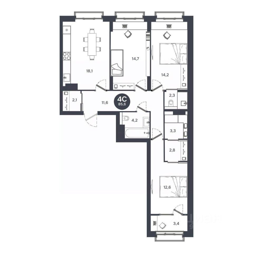 Продаётся 4-комнатная квартира в строящемся доме (Дом 19, секции 2-5), срок сдачи: IV-кв. 2027, общей площадью 85.77 кв.м., на 6 этаже. Расположение, транспортная доступностьНовый жилой комплекс комфорт-класса "Город-парк Ясный Берег" строится на левом берегу реки Обь, но при этом совсем недалеко от центра Новосибирска. Новый микрорайон расположится рядом с проездом Энергетиков, который переходит в Дмитровский мост. Добраться до самого центра мегаполиса совсем несложно: дорога на автомобиле займет всего десять минут в зависимости от загруженности магистралей (расстояние до исторического центра чуть больше 4 км).На общественном транспорте до центральных районов можно доехать за двадцать пять минут (время в пути зависит и от дорожного трафика, от выбранного маршрута и точного места назначения). В шаговой доступности от ЖК "Город-парк Ясный Берег" расположена остановка "Мост", откуда курсируют автобусы и маршрутные такси в разные районы Новосибирска.Рядом с новым ЖК проходят крупнейшие транспортные артерии города Октябрьский мост, проезд Энергетиков, улицы Ватутина, Котовского, Станционная и Немировича-Данченко, так что добраться в любую точку города не составит труда как на машине, так и на общественном транспорте.ИнфраструктураЛенинский район, где возводится "Ясный Берег", считается престижным, так что уже сейчас новые владельцы квартир города-парка смогут наслаждаться комфортной городской жизнью в тихом микрорайоне. В шаговой доступности: детские садики, общеобразовательные школы, магазины, аптеки, сетевые супермаркеты, кафе, аптеки, медицинские учреждения. За пять минут можно доехать до строительного гипермаркета "Леруа Мерлен". Вокруг много мест для отдыха, занятий спортом, прогулок с детьми.Впрочем, согласно концепции, в недалеком будущем жителям "Города-парка Ясный Берег" не понадобится часто покидать пределы любимого микрорайона, поскольку новый жилой комплекс будет представлять собой "город в городе". На территории ЖК будет большой парк с пешеходными и велосипедными дорожками, местами для отдыха, игровыми зонами. Отличительной особенностью станет детская гоночная трасса точный аналог сочинской "Формулы-1".На территории "Города-парка Ясный Берег" построят детские площадки с современным игровым оборудованием, школы, развивающие секции и кружки, детские сады (один построен и уже работает). В городе-парке будут и огороженные места для курения, и территории для прогулок с домашними питомцами. В микрорайоне предусмотрено много зон с wi-fi.Надежность застройщикаЗастройщиком проекта является СК "Аква Сити", основанная в 2012 году. Генеральным подрядчиком компания "Метаприбор". В 2016 году "Метаприбор" занял первое место в области по объемам введенного в эксплуатацию жилья (благодаря своевременной сдаче двух корпусов в ЖК "Город-парк Ясный Берег").Эти компании осуществляют полный цикл строительства от выбора участков под застройку до внутренней отделки, ввода в эксплуатацию и благоустройству территории новых ЖК.И "Аква Сити", и "Метаприбор" име