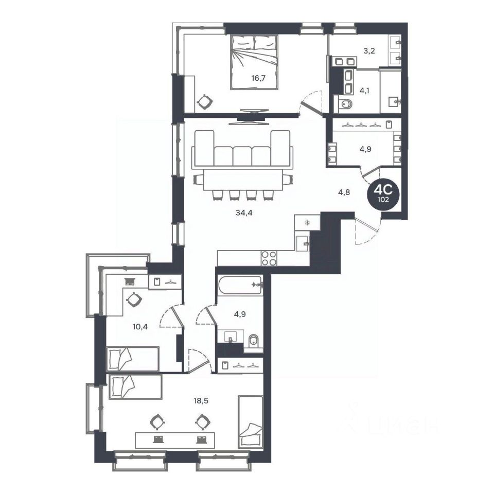 Продаётся 4-комнатная квартира в строящемся доме (Дом 19, секции 2-5), срок сдачи: IV-кв. 2027, общей площадью 101.91 кв.м., на 14 этаже. Расположение, транспортная доступностьНовый жилой комплекс комфорт-класса "Город-парк Ясный Берег" строится на левом берегу реки Обь, но при этом совсем недалеко от центра Новосибирска. Новый микрорайон расположится рядом с проездом Энергетиков, который переходит в Дмитровский мост. Добраться до самого центра мегаполиса совсем несложно: дорога на автомобиле займет всего десять минут в зависимости от загруженности магистралей (расстояние до исторического центра чуть больше 4 км).На общественном транспорте до центральных районов можно доехать за двадцать пять минут (время в пути зависит и от дорожного трафика, от выбранного маршрута и точного места назначения). В шаговой доступности от ЖК "Город-парк Ясный Берег" расположена остановка "Мост", откуда курсируют автобусы и маршрутные такси в разные районы Новосибирска.Рядом с новым ЖК проходят крупнейшие транспортные артерии города Октябрьский мост, проезд Энергетиков, улицы Ватутина, Котовского, Станционная и Немировича-Данченко, так что добраться в любую точку города не составит труда как на машине, так и на общественном транспорте.ИнфраструктураЛенинский район, где возводится "Ясный Берег", считается престижным, так что уже сейчас новые владельцы квартир города-парка смогут наслаждаться комфортной городской жизнью в тихом микрорайоне. В шаговой доступности: детские садики, общеобразовательные школы, магазины, аптеки, сетевые супермаркеты, кафе, аптеки, медицинские учреждения. За пять минут можно доехать до строительного гипермаркета "Леруа Мерлен". Вокруг много мест для отдыха, занятий спортом, прогулок с детьми.Впрочем, согласно концепции, в недалеком будущем жителям "Города-парка Ясный Берег" не понадобится часто покидать пределы любимого микрорайона, поскольку новый жилой комплекс будет представлять собой "город в городе". На территории ЖК будет большой парк с пешеходными и велосипедными дорожками, местами для отдыха, игровыми зонами. Отличительной особенностью станет детская гоночная трасса точный аналог сочинской "Формулы-1".На территории "Города-парка Ясный Берег" построят детские площадки с современным игровым оборудованием, школы, развивающие секции и кружки, детские сады (один построен и уже работает). В городе-парке будут и огороженные места для курения, и территории для прогулок с домашними питомцами. В микрорайоне предусмотрено много зон с wi-fi.Надежность застройщикаЗастройщиком проекта является СК "Аква Сити", основанная в 2012 году. Генеральным подрядчиком компания "Метаприбор". В 2016 году "Метаприбор" занял первое место в области по объемам введенного в эксплуатацию жилья (благодаря своевременной сдаче двух корпусов в ЖК "Город-парк Ясный Берег").Эти компании осуществляют полный цикл строительства от выбора участков под застройку до внутренней отделки, ввода в эксплуатацию и благоустройству территории новых ЖК.И "Аква Сити", и "Метаприбор" и