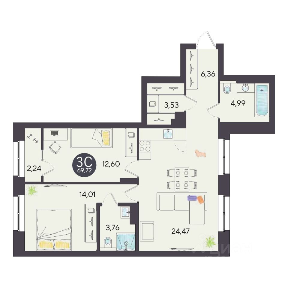 Продаётся 3-комнатная квартира в строящемся доме (Дом 10, 3 этап), срок сдачи: IV-кв. 2027, общей площадью 69.72 кв.м., на 5 этаже. Расположение, транспортная доступностьНовый жилой комплекс комфорт-класса "Город-парк Ясный Берег" строится на левом берегу реки Обь, но при этом совсем недалеко от центра Новосибирска. Новый микрорайон расположится рядом с проездом Энергетиков, который переходит в Дмитровский мост. Добраться до самого центра мегаполиса совсем несложно: дорога на автомобиле займет всего десять минут в зависимости от загруженности магистралей (расстояние до исторического центра чуть больше 4 км).На общественном транспорте до центральных районов можно доехать за двадцать пять минут (время в пути зависит и от дорожного трафика, от выбранного маршрута и точного места назначения). В шаговой доступности от ЖК "Город-парк Ясный Берег" расположена остановка "Мост", откуда курсируют автобусы и маршрутные такси в разные районы Новосибирска.Рядом с новым ЖК проходят крупнейшие транспортные артерии города Октябрьский мост, проезд Энергетиков, улицы Ватутина, Котовского, Станционная и Немировича-Данченко, так что добраться в любую точку города не составит труда как на машине, так и на общественном транспорте.ИнфраструктураЛенинский район, где возводится "Ясный Берег", считается престижным, так что уже сейчас новые владельцы квартир города-парка смогут наслаждаться комфортной городской жизнью в тихом микрорайоне. В шаговой доступности: детские садики, общеобразовательные школы, магазины, аптеки, сетевые супермаркеты, кафе, аптеки, медицинские учреждения. За пять минут можно доехать до строительного гипермаркета "Леруа Мерлен". Вокруг много мест для отдыха, занятий спортом, прогулок с детьми.Впрочем, согласно концепции, в недалеком будущем жителям "Города-парка Ясный Берег" не понадобится часто покидать пределы любимого микрорайона, поскольку новый жилой комплекс будет представлять собой "город в городе". На территории ЖК будет большой парк с пешеходными и велосипедными дорожками, местами для отдыха, игровыми зонами. Отличительной особенностью станет детская гоночная трасса точный аналог сочинской "Формулы-1".На территории "Города-парка Ясный Берег" построят детские площадки с современным игровым оборудованием, школы, развивающие секции и кружки, детские сады (один построен и уже работает). В городе-парке будут и огороженные места для курения, и территории для прогулок с домашними питомцами. В микрорайоне предусмотрено много зон с wi-fi.Надежность застройщикаЗастройщиком проекта является СК "Аква Сити", основанная в 2012 году. Генеральным подрядчиком компания "Метаприбор". В 2016 году "Метаприбор" занял первое место в области по объемам введенного в эксплуатацию жилья (благодаря своевременной сдаче двух корпусов в ЖК "Город-парк Ясный Берег").Эти компании осуществляют полный цикл строительства от выбора участков под застройку до внутренней отделки, ввода в эксплуатацию и благоустройству территории новых ЖК.И "Аква Сити", и "Метаприбор" имеют х