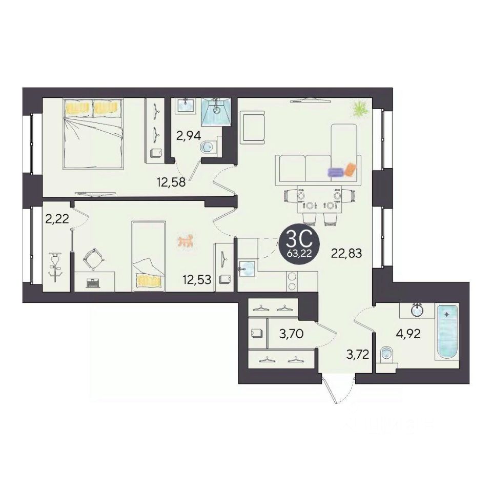 Продаётся 3-комнатная квартира в строящемся доме (Дом 10, 3 этап), срок сдачи: IV-кв. 2027, общей площадью 63.22 кв.м., на 8 этаже. Расположение, транспортная доступностьНовый жилой комплекс комфорт-класса "Город-парк Ясный Берег" строится на левом берегу реки Обь, но при этом совсем недалеко от центра Новосибирска. Новый микрорайон расположится рядом с проездом Энергетиков, который переходит в Дмитровский мост. Добраться до самого центра мегаполиса совсем несложно: дорога на автомобиле займет всего десять минут в зависимости от загруженности магистралей (расстояние до исторического центра чуть больше 4 км).На общественном транспорте до центральных районов можно доехать за двадцать пять минут (время в пути зависит и от дорожного трафика, от выбранного маршрута и точного места назначения). В шаговой доступности от ЖК "Город-парк Ясный Берег" расположена остановка "Мост", откуда курсируют автобусы и маршрутные такси в разные районы Новосибирска.Рядом с новым ЖК проходят крупнейшие транспортные артерии города Октябрьский мост, проезд Энергетиков, улицы Ватутина, Котовского, Станционная и Немировича-Данченко, так что добраться в любую точку города не составит труда как на машине, так и на общественном транспорте.ИнфраструктураЛенинский район, где возводится "Ясный Берег", считается престижным, так что уже сейчас новые владельцы квартир города-парка смогут наслаждаться комфортной городской жизнью в тихом микрорайоне. В шаговой доступности: детские садики, общеобразовательные школы, магазины, аптеки, сетевые супермаркеты, кафе, аптеки, медицинские учреждения. За пять минут можно доехать до строительного гипермаркета "Леруа Мерлен". Вокруг много мест для отдыха, занятий спортом, прогулок с детьми.Впрочем, согласно концепции, в недалеком будущем жителям "Города-парка Ясный Берег" не понадобится часто покидать пределы любимого микрорайона, поскольку новый жилой комплекс будет представлять собой "город в городе". На территории ЖК будет большой парк с пешеходными и велосипедными дорожками, местами для отдыха, игровыми зонами. Отличительной особенностью станет детская гоночная трасса точный аналог сочинской "Формулы-1".На территории "Города-парка Ясный Берег" построят детские площадки с современным игровым оборудованием, школы, развивающие секции и кружки, детские сады (один построен и уже работает). В городе-парке будут и огороженные места для курения, и территории для прогулок с домашними питомцами. В микрорайоне предусмотрено много зон с wi-fi.Надежность застройщикаЗастройщиком проекта является СК "Аква Сити", основанная в 2012 году. Генеральным подрядчиком компания "Метаприбор". В 2016 году "Метаприбор" занял первое место в области по объемам введенного в эксплуатацию жилья (благодаря своевременной сдаче двух корпусов в ЖК "Город-парк Ясный Берег").Эти компании осуществляют полный цикл строительства от выбора участков под застройку до внутренней отделки, ввода в эксплуатацию и благоустройству территории новых ЖК.И "Аква Сити", и "Метаприбор" имеют х