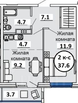 Общая площадь квартиры 37,4 кв.м. + лоджия 3,7 кв.м. Квартира расположена на высоком первом этаже.