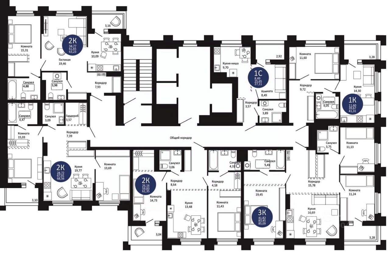 — широкая линейка планировок: от уютных студий до просторных 3К